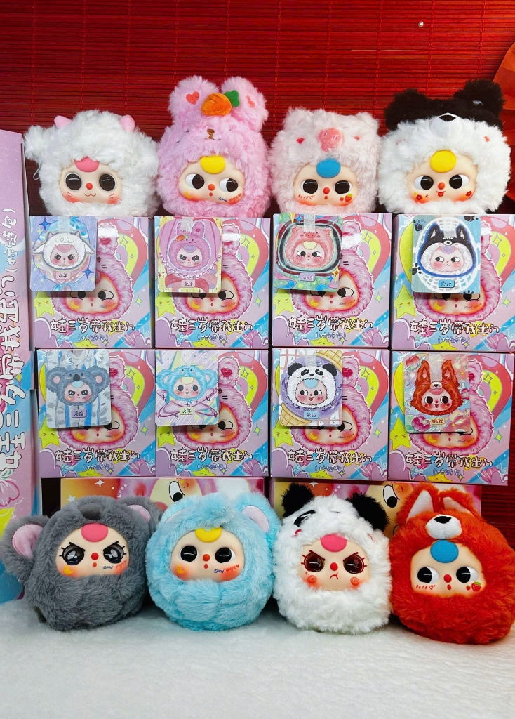 - Thiết kế đa dạng: Mỗi nhân vật trong Baby Three Zipper Animal Party Big Cute Plush Series đều có một thiết kế độc đáo, kết hợp giữa hình ảnh Baby Three kinh điển và các loài động vật khác nhau.