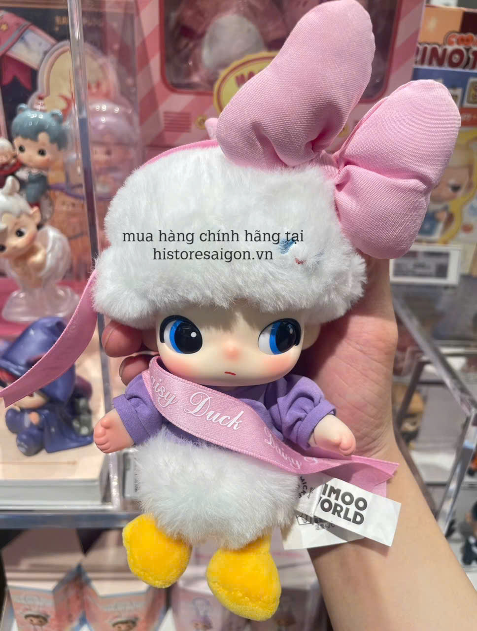 Dimoo Daisy Pop Mart x Disney – móc treo túi bông nghệ thuật. Hàng chính hãng, decor túi xách siêu xinh, hân vật Daisy Duck đáng yêu