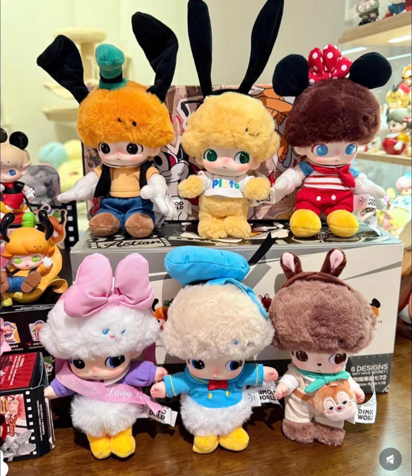 Với sự sáng tạo của mình, Popmart đã sử dụng nhân vật Top1 doanh thu Dimoo tóc mây hóa thân thành lần lượt các nhân vật của nhà chuột Disney vốn dĩ đã quen thuộc đến không thể quen thuộc hơn. Vẫn giữ được những nét tạo hình riêng như bộ váy hoa chấm bi của cô chuột Minnie dễ thương, nét kiêu kỳ của Vịt Donal, sự đỏng đảnh của cô vịt Daisy hay sự cute muốn xỉu của bộ đôi 2 chú cún Gloffy - Pluto cùng sự cải tiến tuyệt vời khi kết hợp 2 chú sóc Chip and Dole,... Tất cả dường như cùng hòa quyện tạo nên tổng thể hài hòa cho bộ suư tập cũng như là minh chứng cho khẳng định về Top1 sever về đồ chơi art-toy tại châu Á.