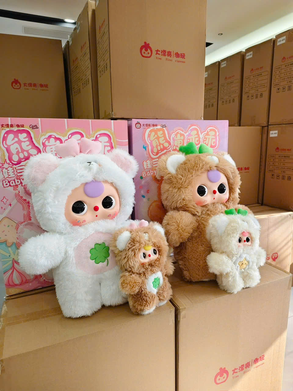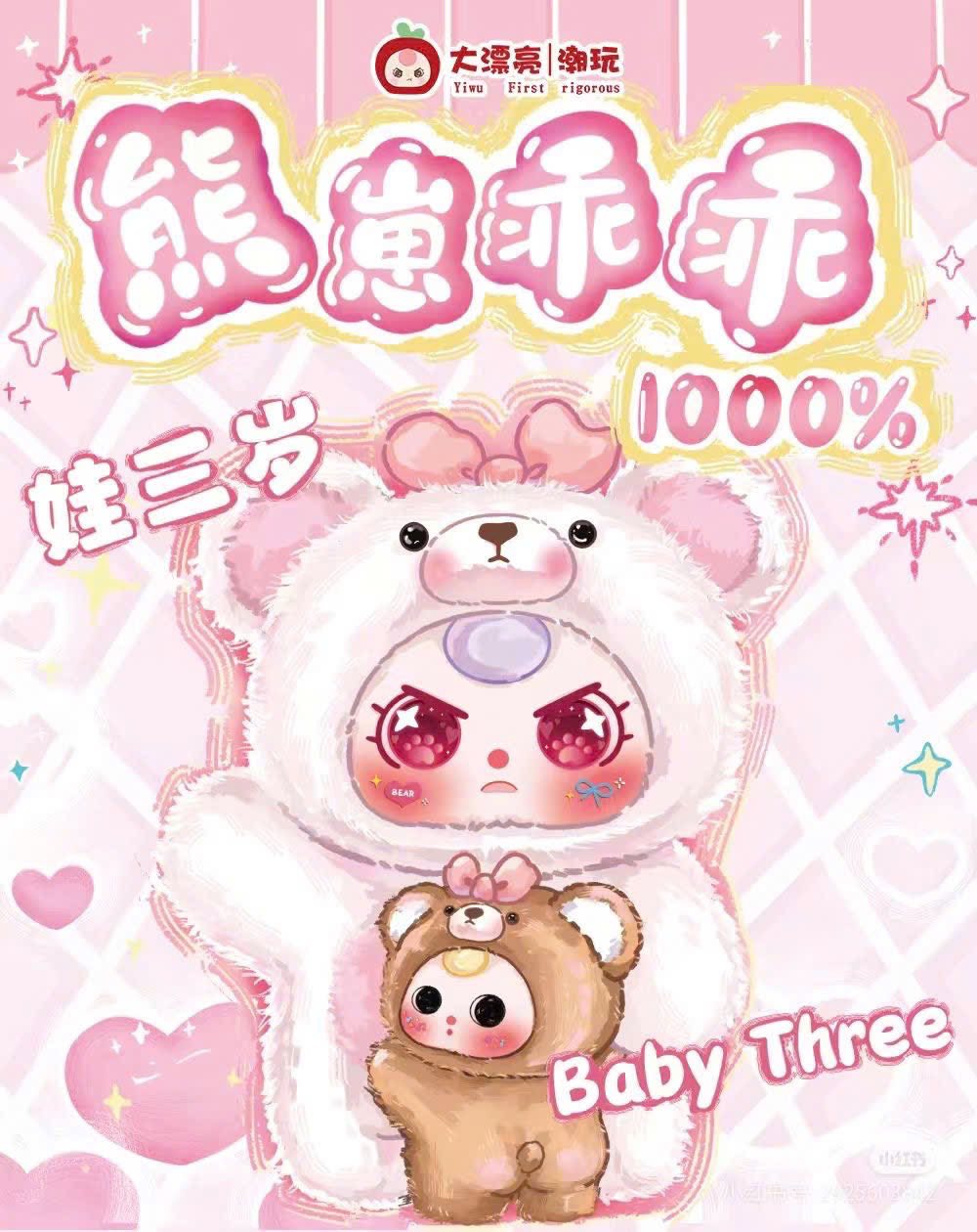 Baby Three là thương hiệu nổi tiếng toàn cầu đến từ Trung Quốc, chuyên sản xuất các dòng đồ chơi nhồi bông mang tính sưu tầm cao. Nổi tiếng từ cách khai thác triệt để hiện tượng "khui túi mù" cùng sức sáng tạo tối đa hết công suất để trình làng những thiết kế mang đậm tính tò mò và kích thích người dùng khi cho ra mắt sản phẩm nhồi bông với nhiều khuôn mặt, loại mắt khác nhau. Từ đó Baby Three nhanh chóng làm điên đảo thị trường và đẩy độ HOT của chính thương hiệu lên đỉnh điểm trong giới hâm mộ.