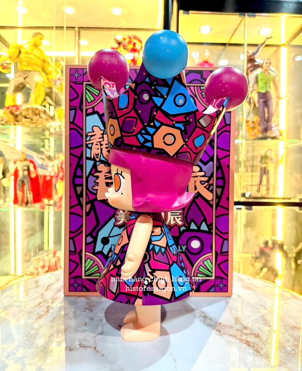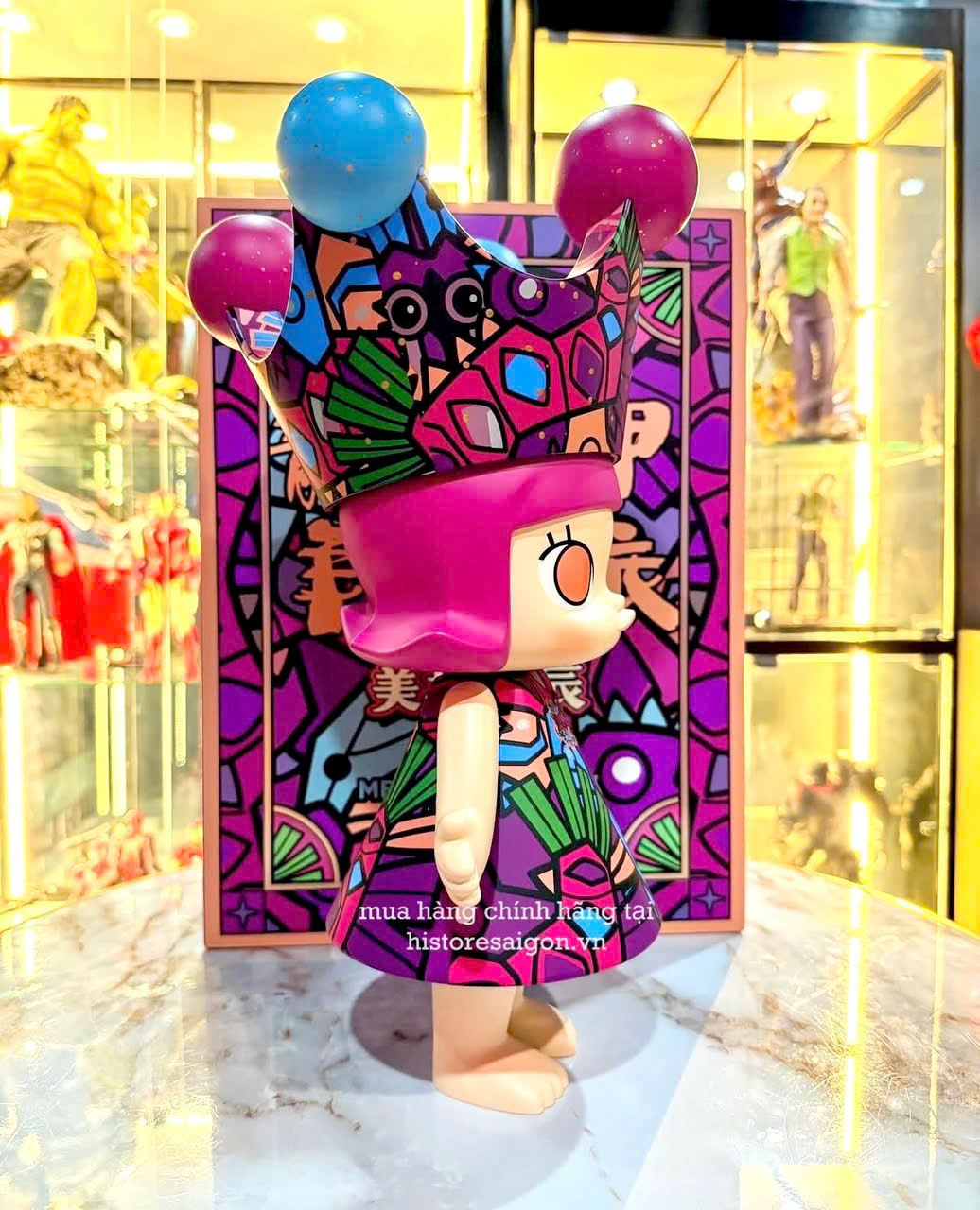 Cảm giác khi trưng bày em này thực sự rất "chất". Dáng đứng uy nghi, biểu cảm tự tin, phối cùng màu sơn bóng mịn và họa tiết sắc nét khiến Molly Han Meilin dễ dàng trở thành tâm điểm của mọi kệ trưng bày. Đây không chỉ là một món đồ chơi – nó là một tác phẩm nghệ thuật, một vật phẩm trang trí có chiều sâu.
