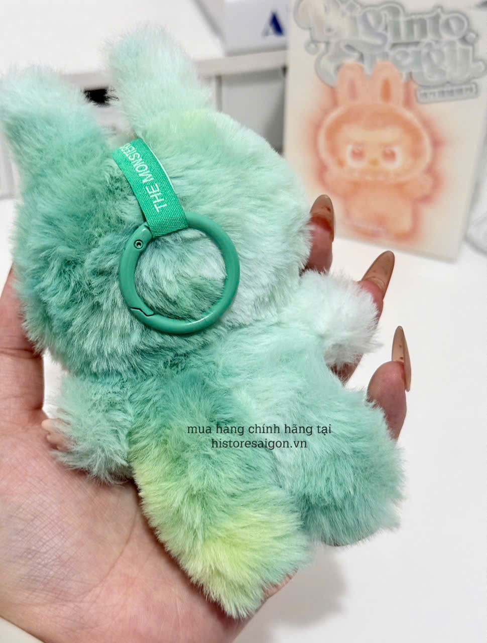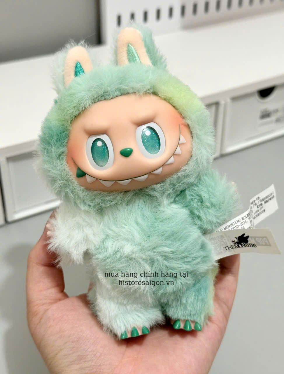 Labubu V3 Serenity vẫn được làm từ vinyl cao cấp, mịn, hoàn thiện rất chỉn chu. Các chi tiết từ tai, tóc, tay, đuôi cho tới mắt đều sắc nét. Màu lông xanh được xử lý theo kiểu matte (mờ), tạo cảm giác rất dịu mắt và sang trọng. Cầm trên tay cảm giác chắc chắn, không quá nặng nhưng đủ “đằm”.