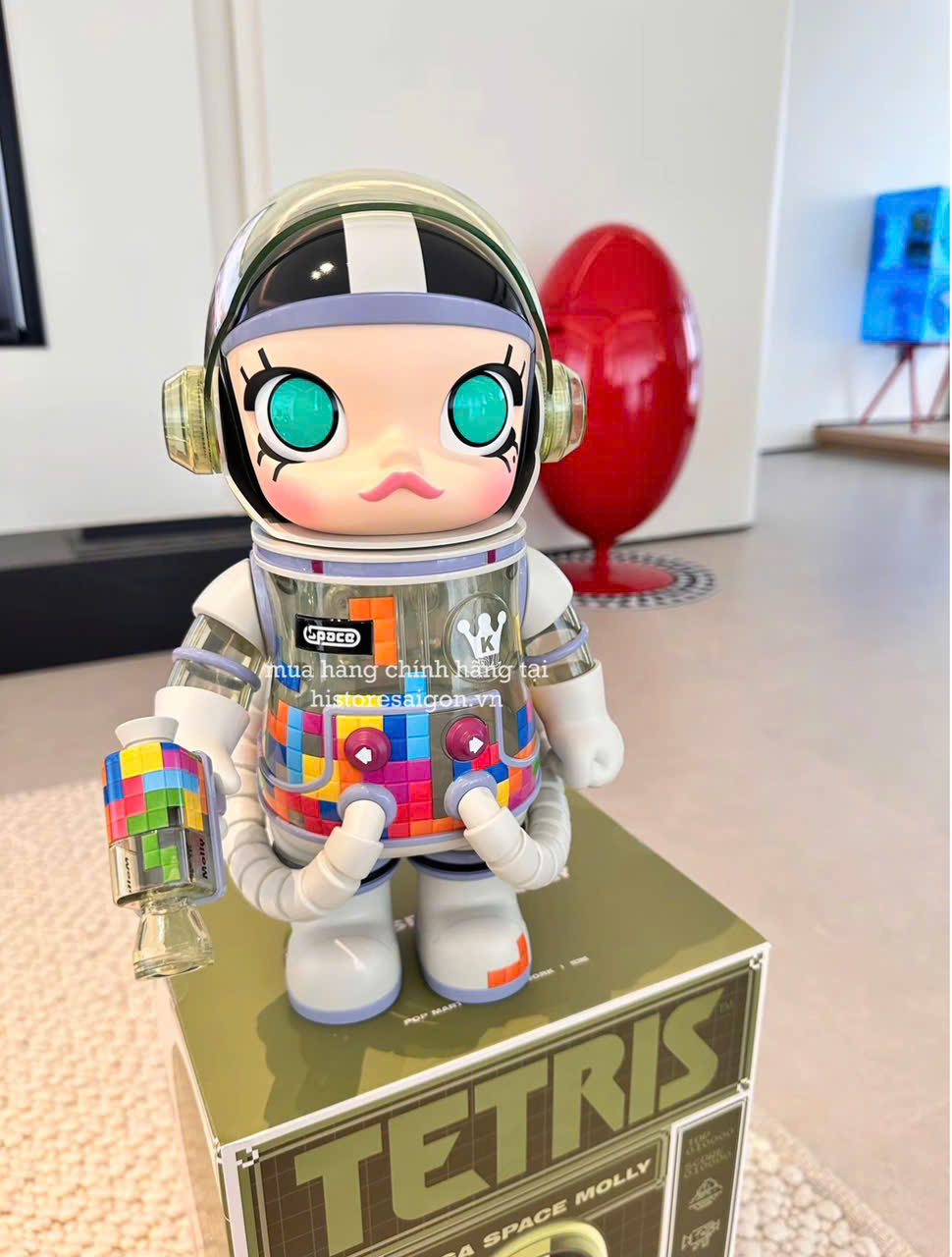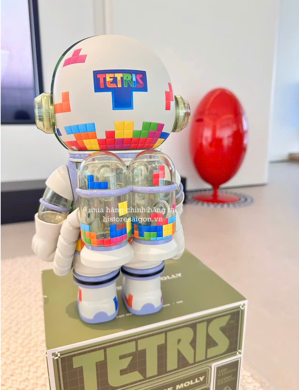 Molly Tetris 400% khoác lên mình bộ đồ phi hành gia đặc trưng, nhưng điểm nhấn chính là phần thân trong suốt, bên trong chứa các khối Tetris đầy màu sắc được sắp xếp tinh tế. Chi tiết này không chỉ gợi nhớ đến trò chơi Tetris mà còn tạo nên hiệu ứng thị giác độc đáo, khiến figure trở nên sống động và cuốn hút.