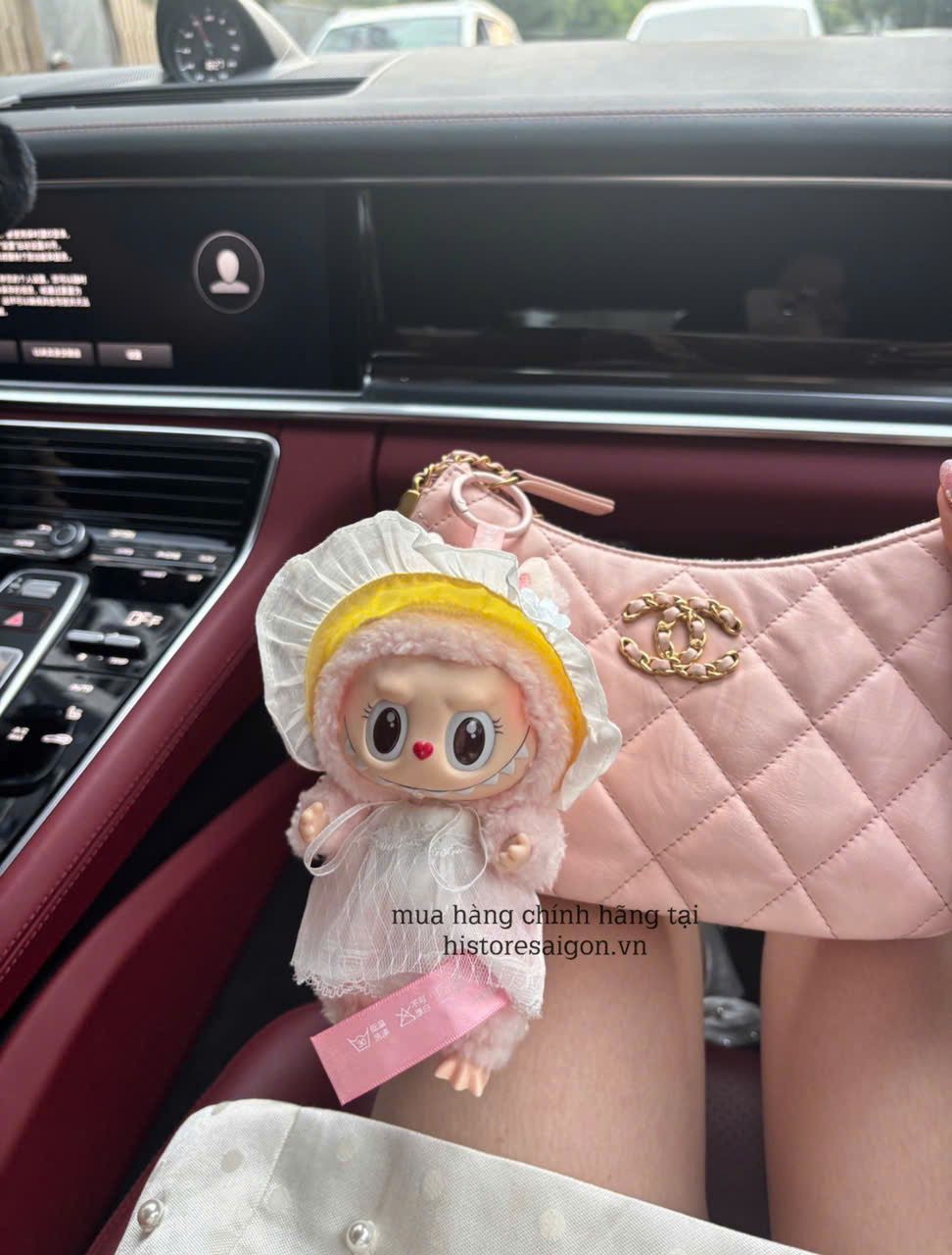 Phần tạo hình vẫn giữ nguyên nét đặc trưng của Mokoko: đôi mắt lặng thinh, khuôn mặt tròn nhẹ và phần tóc dài mềm mại. Màu sắc lần này thiên về pastel nhẹ – sự pha trộn giữa hồng nhạt, xanh ngọc và chút vàng chanh – như thể cả mùa xuân đang lặng lẽ trú ngụ trong chiếc móc treo bé nhỏ ấy.