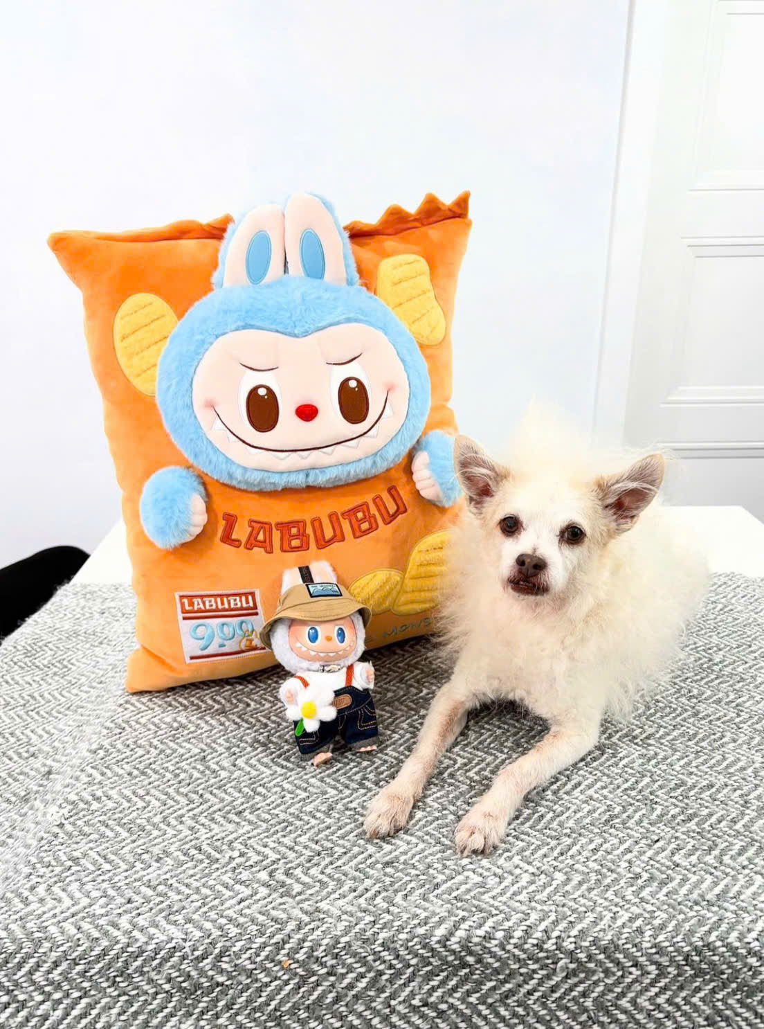Mặt gối in Labubu hình snack chips khiến ngày dài căng thẳng dường như trở nên dễ chịu hơn. -