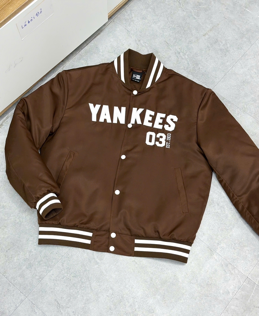 - Thiết kế iconic: Áo bomber New Era giữ nguyên silhouette cổ điển với cổ, tay và gấu áo ribbed, kết hợp khóa kéo phía trước chắc chắn. Logo New Era thêu sắc nét ở ngực trái hoặc tay áo, cùng các chi tiết patch hoặc embroidery đặc trưng, mang lại vibe streetwear mạnh mẽ.