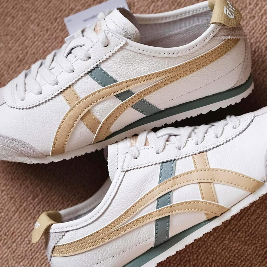 - Phối màu tinh tế: Tông Cream (kem nhạt) chủ đạo kết hợp Mineral Brown (nâu khoáng ấm áp), tạo vẻ ngoài thanh lịch, dễ phối đồ từ casual đến streetwear. Màu sắc trung tính này mang lại sự hài hòa, với Onitsuka Tiger Stripe mảnh mai tạo điểm nhấn tinh xảo mà không phô trương.