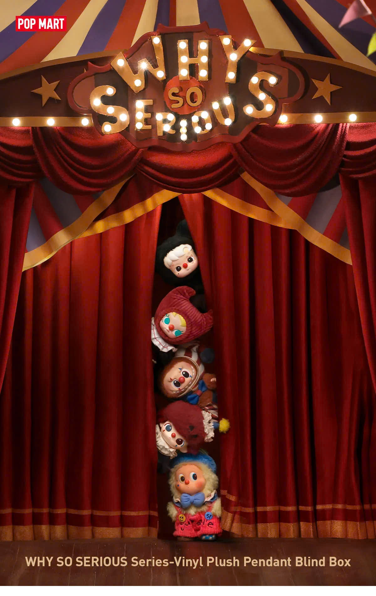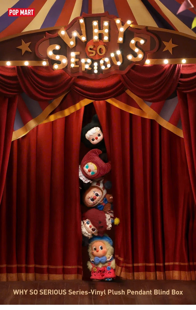 Phiên bản Labubu Why So Serious được POP MART chế tác với độ tỉ mỉ cao, mỗi nhân vật đều mang biểu cảm khác biệt, trang phục phong cách carnival rực rỡ kết hợp cùng chất liệu vải mềm và chi tiết khâu tay tinh tế.