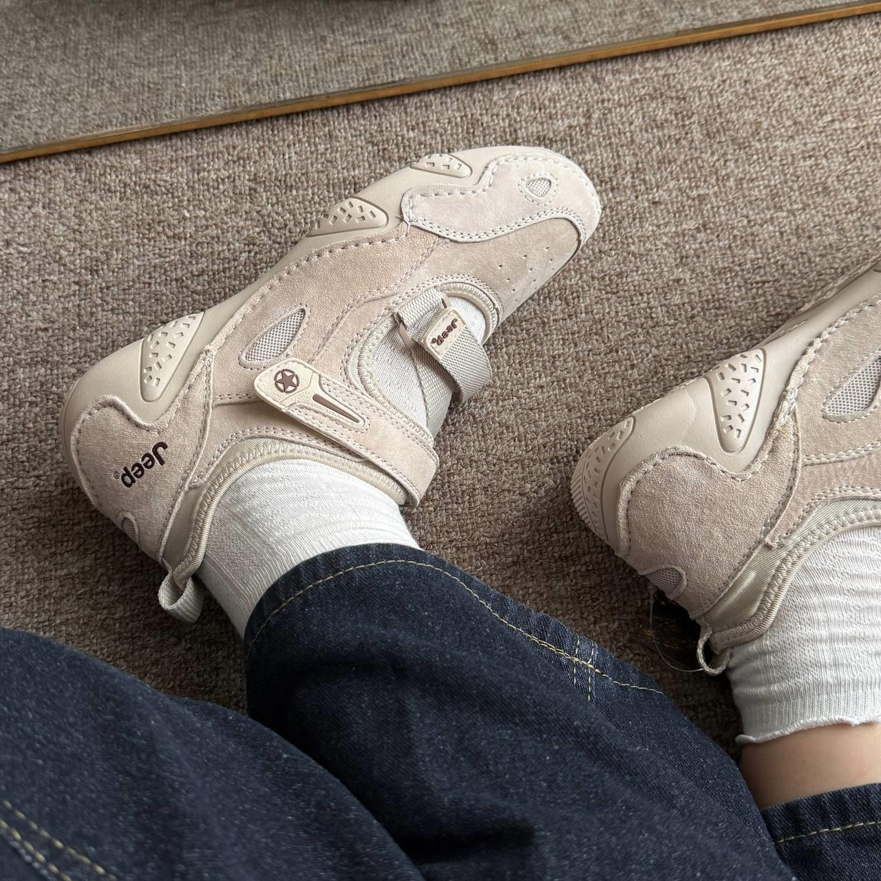 • Điểm nhấn: Phối màu beige trung tính, logo Jeep nổi bật; đế chắc chắn giúp tăng độ bám và ổn định khi di chuyển