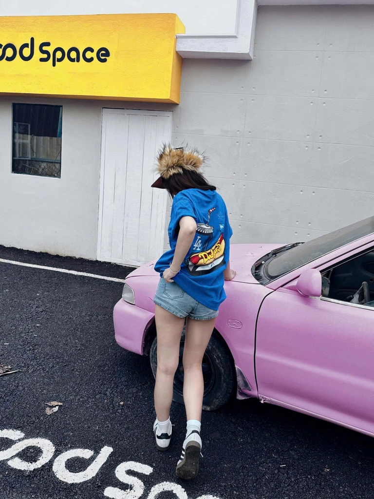 • Nữ tính trẻ trung: Mix với chân váy denim hoặc shorts, thêm giày Puma Speedcat Ballet để tạo vẻ ngoài năng động, thời thượng.