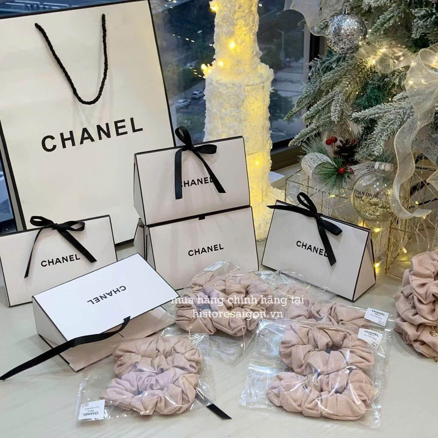 Có gì đi đi kèm Cột Tóc Chanel Gift Hồng