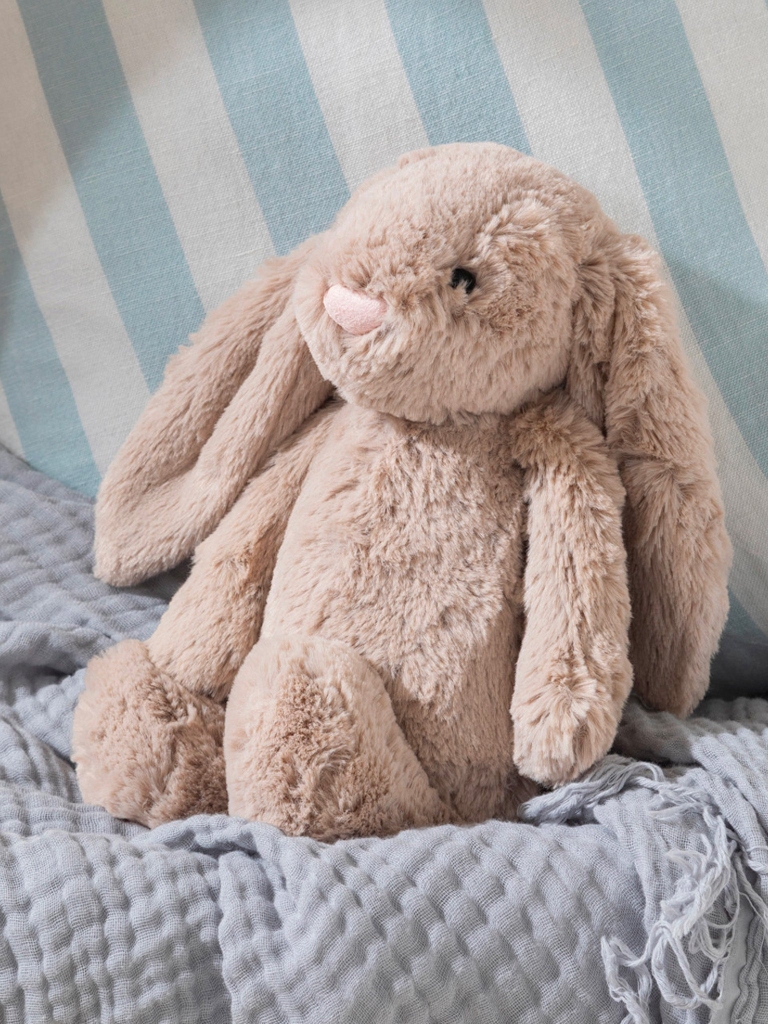 Mẫu thú bông này thuộc dòng Bashful Bunny – dòng sản phẩm biểu tượng của Jellycat với chất liệu mềm mại và thiết kế tinh tế.