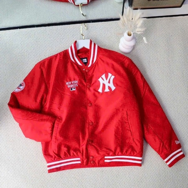 - Thiết kế iconic: Áo bomber New Era giữ nguyên silhouette cổ điển với cổ, tay và gấu áo ribbed, kết hợp khóa kéo phía trước chắc chắn. Logo New Era thêu sắc nét ở ngực trái hoặc tay áo, cùng các chi tiết patch hoặc embroidery đặc trưng, mang lại vibe streetwear mạnh mẽ.
