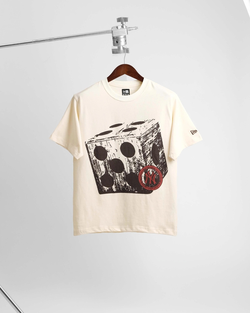 Thiết kế iconic: Áo thun New Era nổi bật với logo thương hiệu thêu hoặc in sắc nét ở ngực hoặc tay áo, thường đi kèm các chi tiết đội bóng MLB (như New York Yankees, LA Dodgers) hoặc graphic print độc đáo. Cổ tròn (crewneck) hoặc cổ chữ V (v-neck) với fit relaxed hoặc regular, phù hợp cho cả nam và nữ.