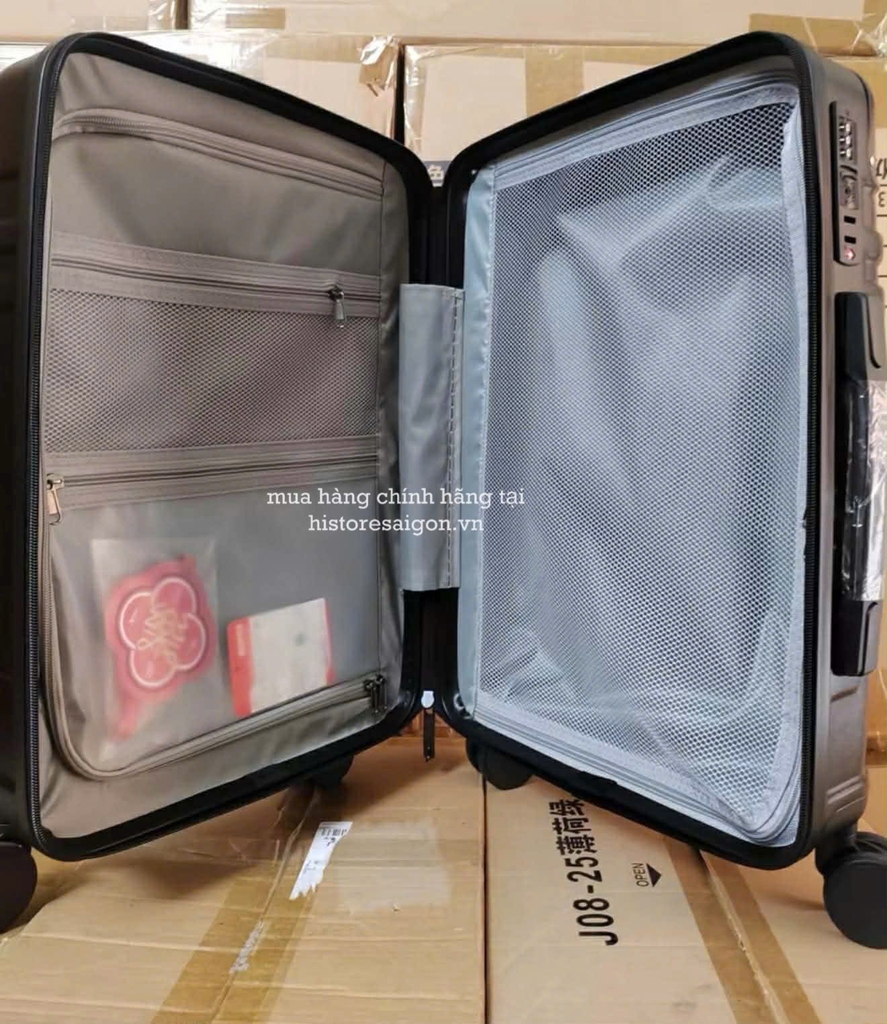Ngăn chứa: Nội thất thông minh, dây đai chữ X cố định hành lý và ngăn lưới khóa kéo phân loại tiện lợi