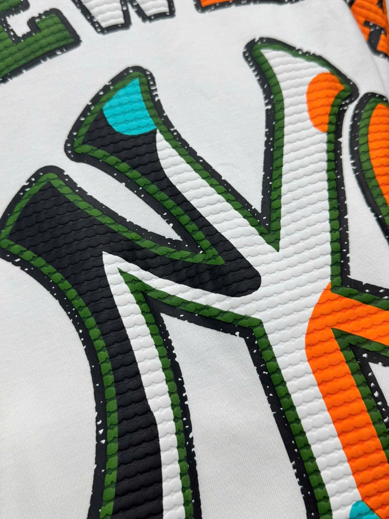 Thiết kế iconic: Áo thun New Era nổi bật với logo thương hiệu thêu hoặc in sắc nét ở ngực hoặc tay áo, thường đi kèm các chi tiết đội bóng MLB (như New York Yankees, LA Dodgers) hoặc graphic print độc đáo. Cổ tròn (crewneck) hoặc cổ chữ V (v-neck) với fit relaxed hoặc regular, phù hợp cho cả nam và nữ.