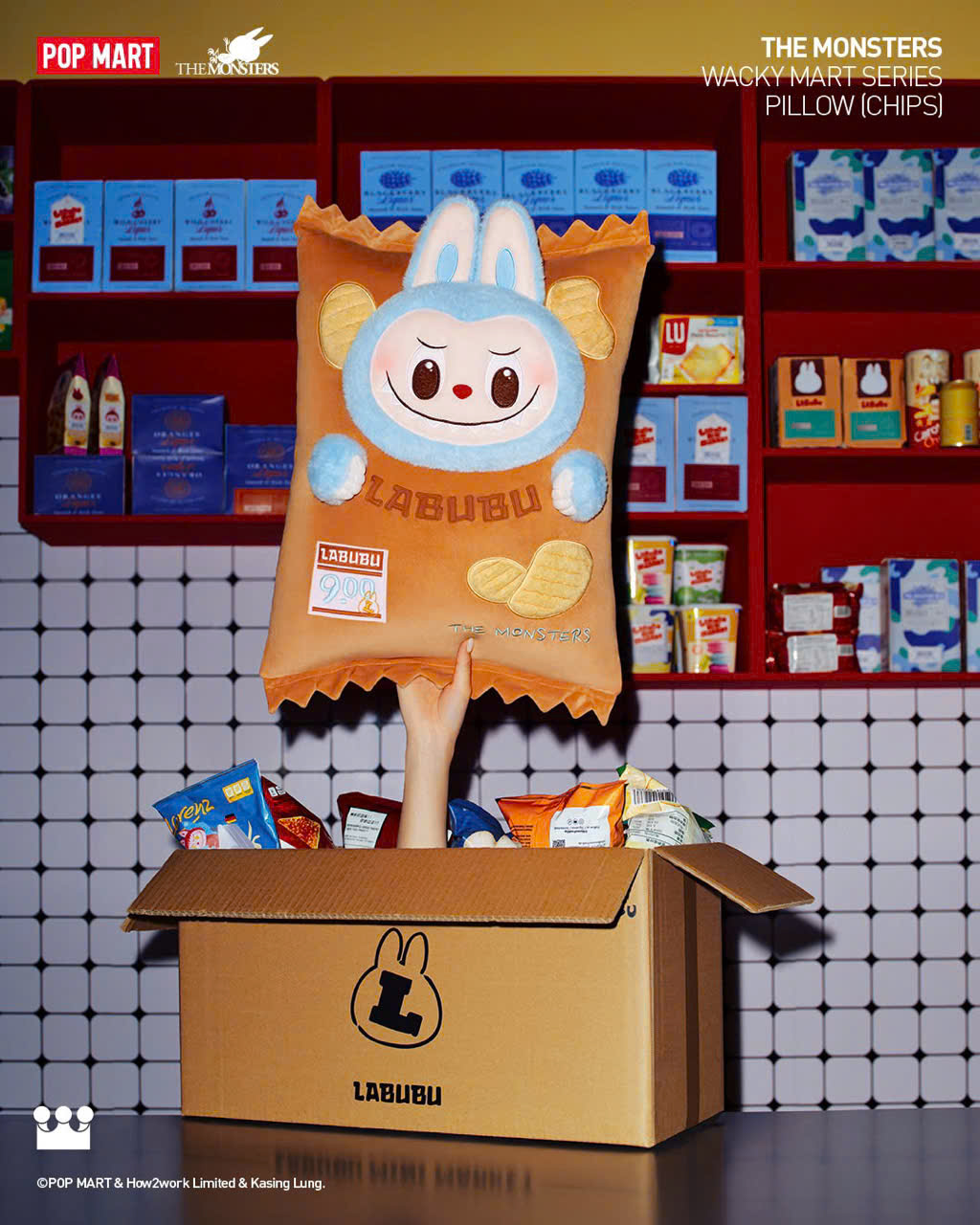 Giữa vô số món đồ trưng đầy màu sắc, Gối Labubu Pillow Chips phiên bản Wacky Mart Series, hiện lên như một bức tranh thu nhỏ của niềm vui vô lo. Cao khoảng 56×35 cm, chiếc gối ôm này không chỉ là phụ kiện – nó là người bạn dịu dàng, theo sát từng giấc ngủ và những khoảnh khắc nghỉ ngơi của người yêu Popmart
