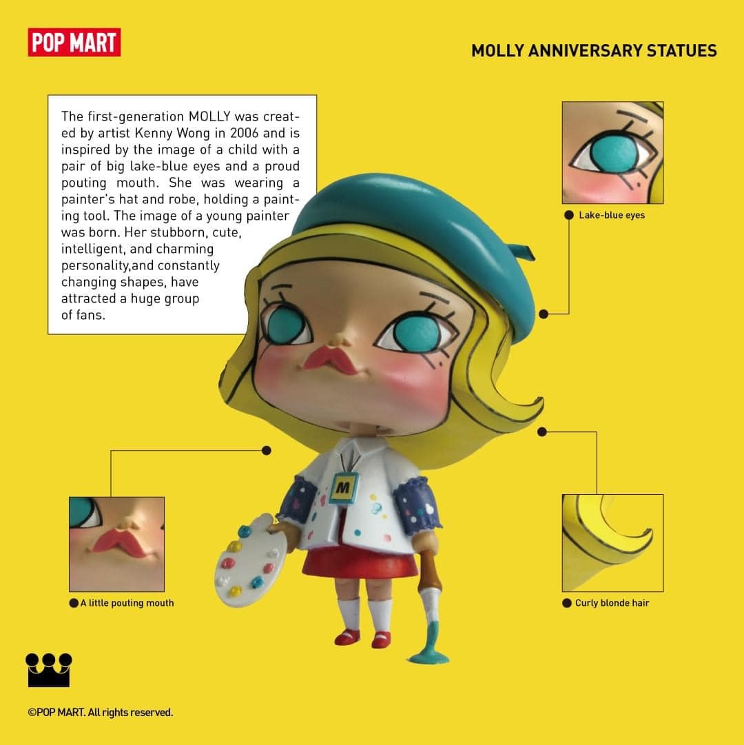 Được tạo ra vào năm 2006 tại Hồng Kông bởi nghệ sĩ Kenny Wong - một nhà thiết kế nổi tiếng đến từ Hồng Kông, MOLLY được khắc hoạ từ hình ảnh của một đứa trẻ với đôi mắt xanh biếc và đôi môi chúm chím đáng yêu và mái tóc xoăn vàng óng. Đội trên đầu là chiếc mũ họa sĩ và khoác áo choàng, MOLLY như một họa sĩ tí hon với bộ dụng cụ vẽ tranh trên tay đầy tài năng và niềm tự hào