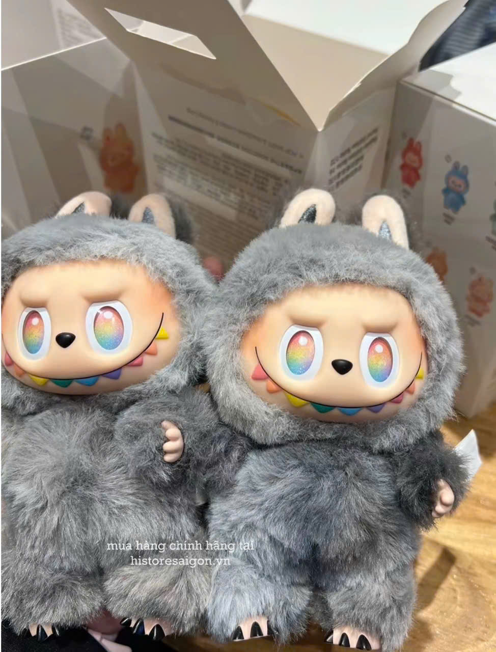 Với một chút may mắn, bạn có thể sở hữu phiên bản ẩn hiếm (secret ID) – Labubu V3 Secret sở hữu lớp lông xám đặc trưng, đôi mắt lấp lánh với hiệu ứng chuyển màu cầu vồng, điểm xuyết kim tuyến. Đặc biệt, răng cầu vồng cùng mũi và móng chân màu đen khiến bé trở nên nổi bật và độc đáo hơn bao giờ hết.