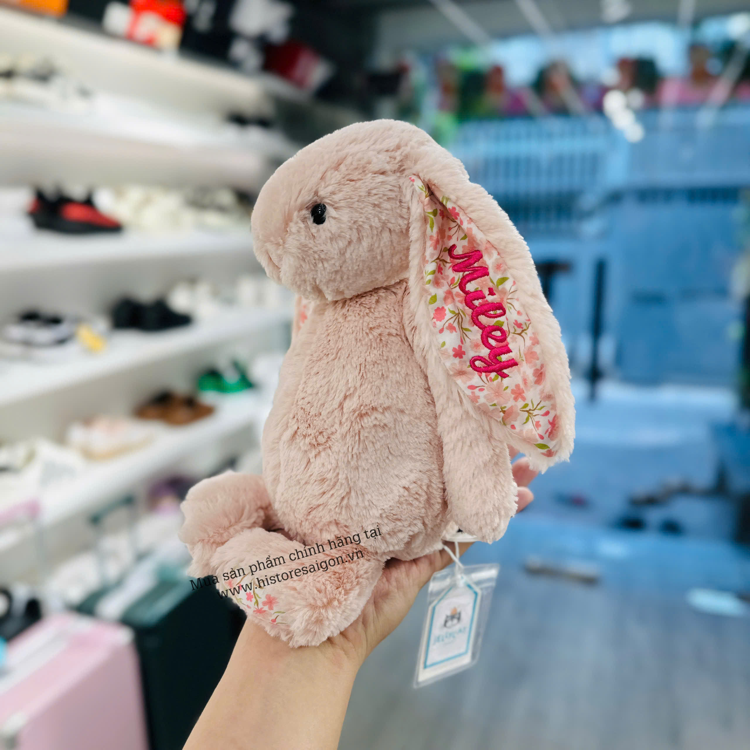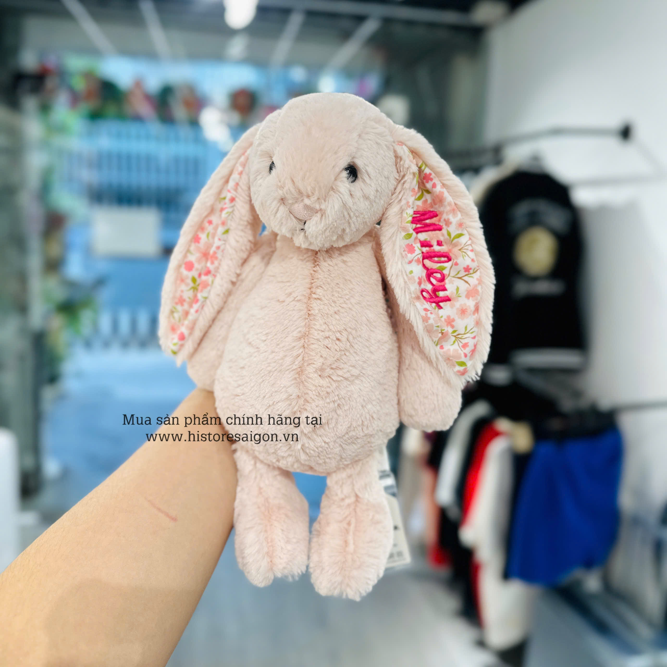 Nếu bạn đang tìm địa chỉ thêu tên Jellycat ở Tp.HCM, bạn có thể liên hệ Hí Store - Cửa hàng với gần 10 năm kinh nghiệm trong lĩnh vực hàng chính hãng. Tại Hí Store bạn có thể lựa những bé Jellycat chính hãng với đầy đủ hình dáng và kích thước, đồng thời cũng Hí Store có nhận thêu tên theo yêu cầu của bạn.
