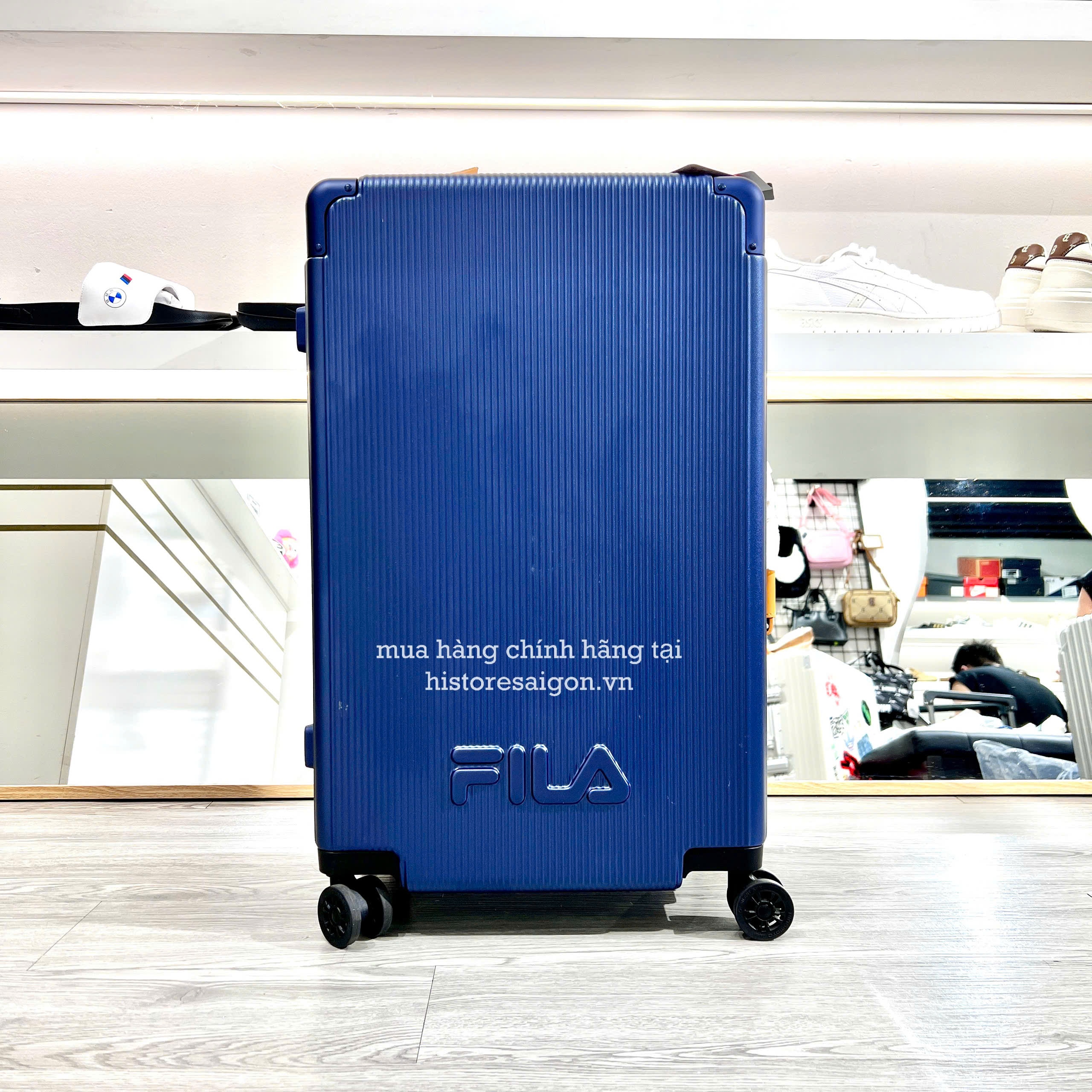 Khác với các dòng vali in màu thông thường, họa tiết logo Fila dập nổi giúp sản phẩm có độ nhận diện cao và tăng khả năng chống trầy xước bề mặt. Màu xanh Navy đậm (thường được gọi là xanh LV) mang lại cảm giác quyền lực và vô cùng thời thượng.